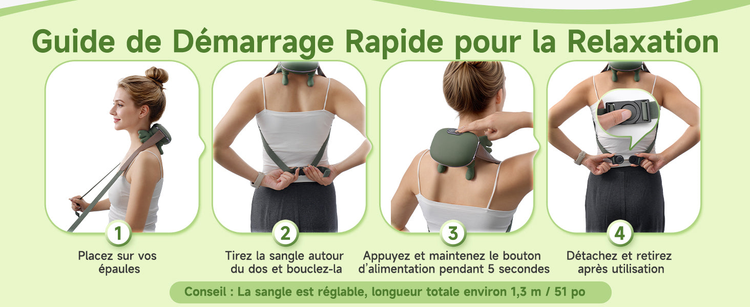 Il est idéal pour la nuque, les épaules, le dos et d’autres zones ciblées nécessitant détente et confort.